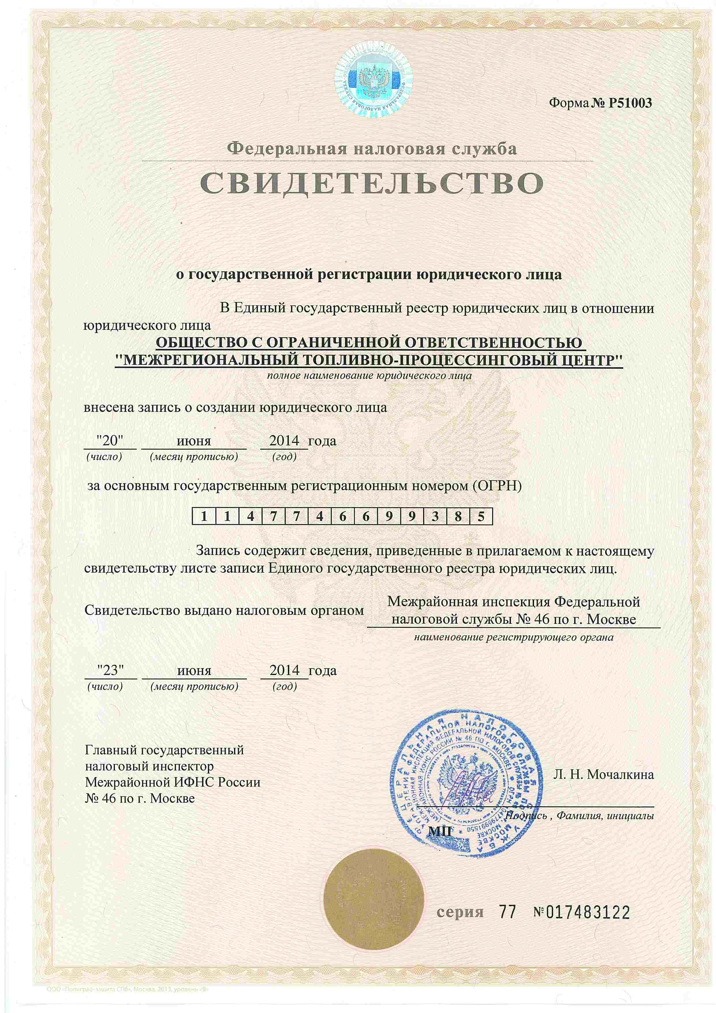 Свидетельство о постановке на учет Российской организации в налоговом органе по месту ее нахождения.